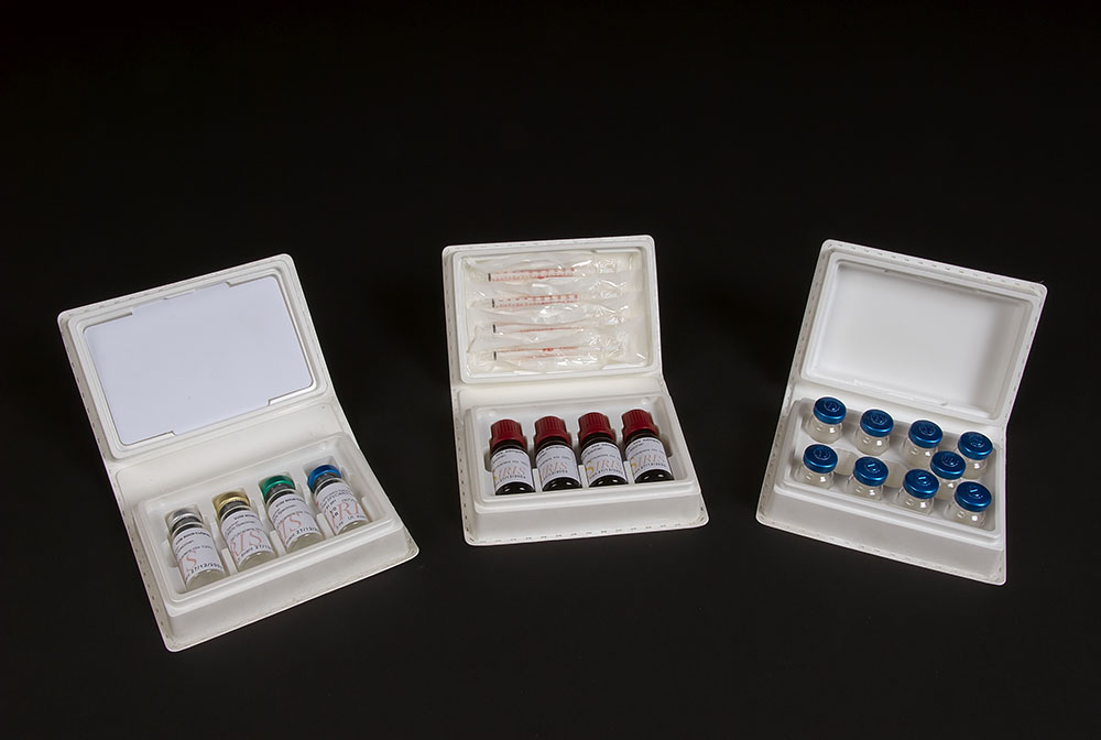 Barquettes de conditionnement, boites de transport ou encore présentoirs de vente pour les pharmacies.